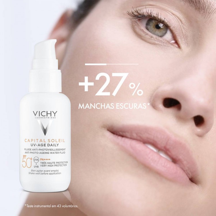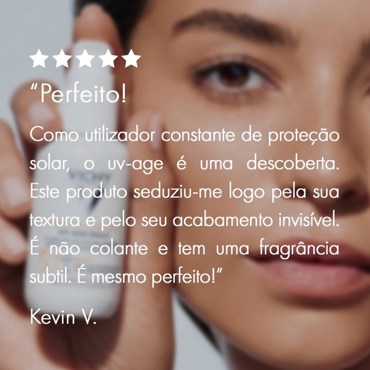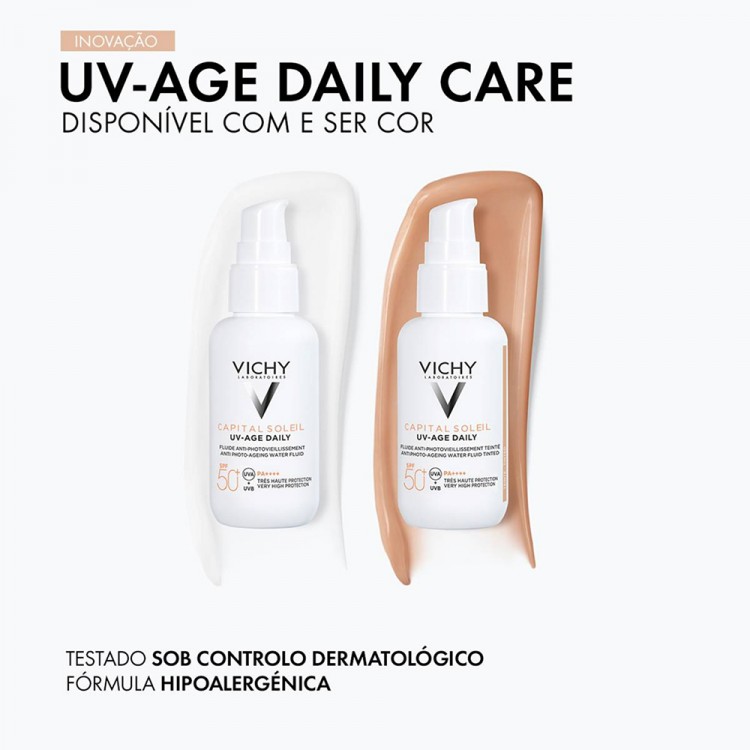 UV-AGE DAILY é um fluido antifotoenvelhecimento que oferece uma elevada proteção UVA & UVB, ao mesmo tempo que atua em sinais existentes de envelhecimento da pele (rugas e manchas escuras). Hipoalergénico, testado sob controlo dermatológico e oftalmológico. Todos os tipos de pele.