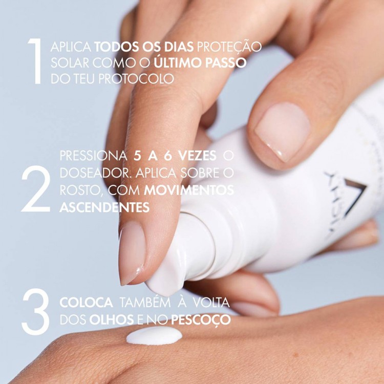 Após anos de pesquisa, a Vichy desenvolveu uma nova geração de filtros UV que oferece um acabamento invisível e uma sensorialidade única. O segredo desta inovação é a nova tecnologia patenteada NETLOCK, desenvolvida com base no princípio da emulsão: filtros UV estão suspensos em micro-gotículas de gel, formando um filme ultrafino, homogéneo e ultraresistente quando aplicado na pele.
