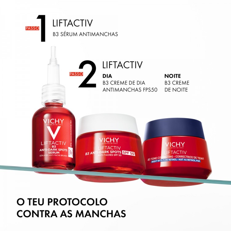 Vichy Liftactiv B3 Creme de Noite Antimanchas 50ml: Liftactiv B3 é um creme de rosto que combina poderosos ativos dermatológicos antimanchas, agora num creme de noite confortável.