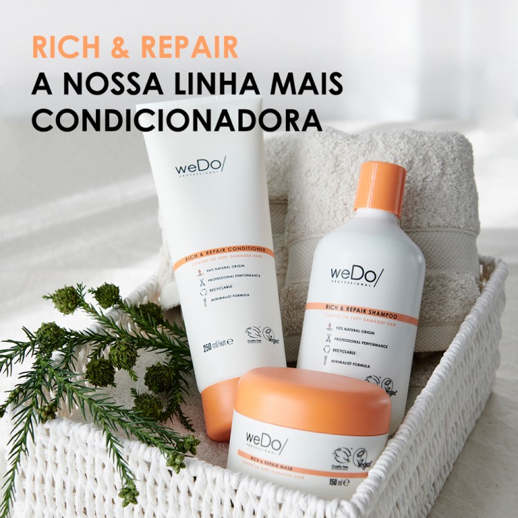 weDo/ Professional Rich & Repair Máscara 150ml: A máscara capilar Rich & Repair nutre em profundidade e ajuda a reduzir a quebra do cabelo.