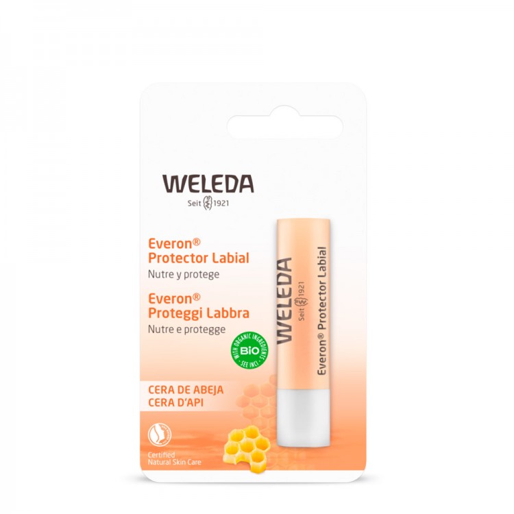 Weleda Everon Protector Labial Stick 4.8g: Nutre e regenera os lábios gretados, deixando um brilho natural suave e um aroma subtil de baunilha e rosas.